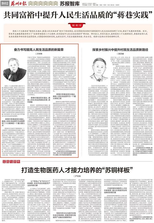 【编者按】《苏州日报》2022年11月29日刊登了苏州大学东吴智库首席专家方世南教授的文章《奋力书写提高人民生活品质的新篇章》。文章聚焦党的二十大报告中“增进民生福祉、提高人民生活品质”部分,对常熟市支塘镇蒋巷村的率先探索和创新实践进行了具体分析。现将全文转载如下,以飨读者。