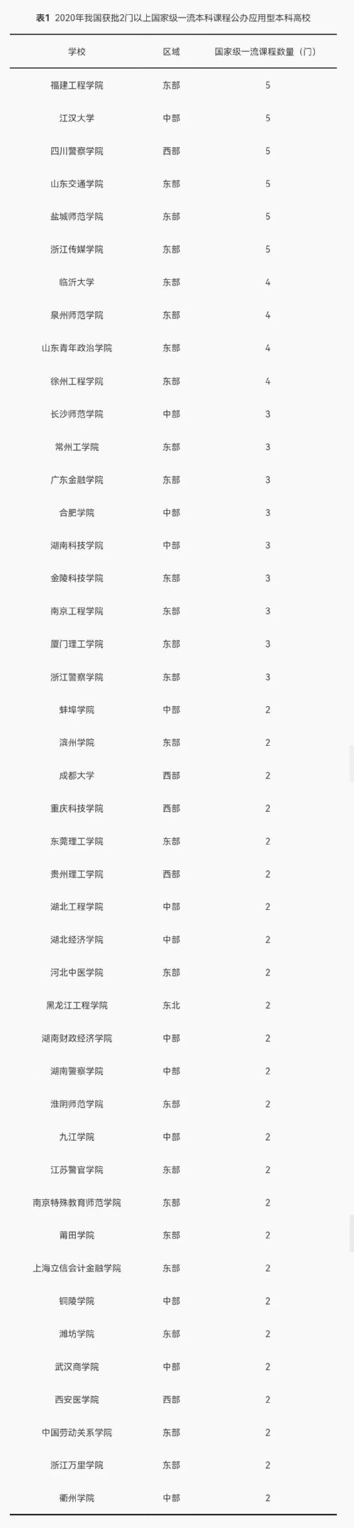 此外,2020年,有9所公办应用型本科高校获批3门国家级一流本科课程,25所公办应用型本科高校获批2门国家级一流本科课程,71所公办应用型本科高校获批1门国家级一流本科课程。