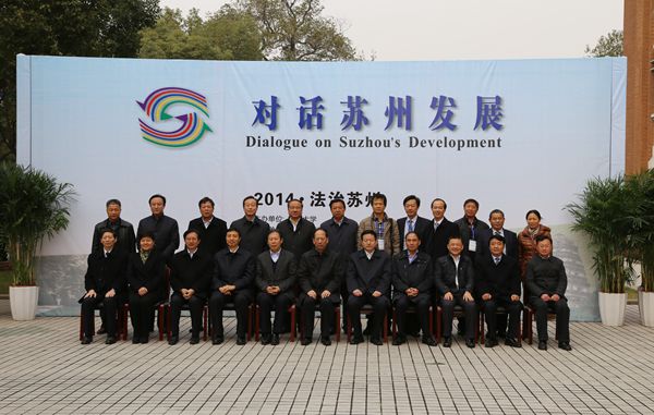 《对话苏州发展》“2014·法治苏州”活动结束后,与会的领导和专家学者在图书馆前合影留念。
