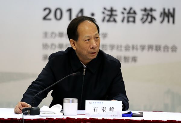 在谈到如何全面推进法治苏州时,石泰峰强调,要鲜明地提出建设法治型党组织,做到依法执政,强化法治思维、法治方式。要以建设法治型党组织为引领和保障,推进法治政府、法治市场、法治社会的一体化建设。他最后表示,要推动法治,除了需要党组织和政府的工作,还要有社会认同,要让法治苏州的概念在党组织、政府、社会、企业中成为大家的共识。只有让法治成为共识,才能更好地建设和推进法治。