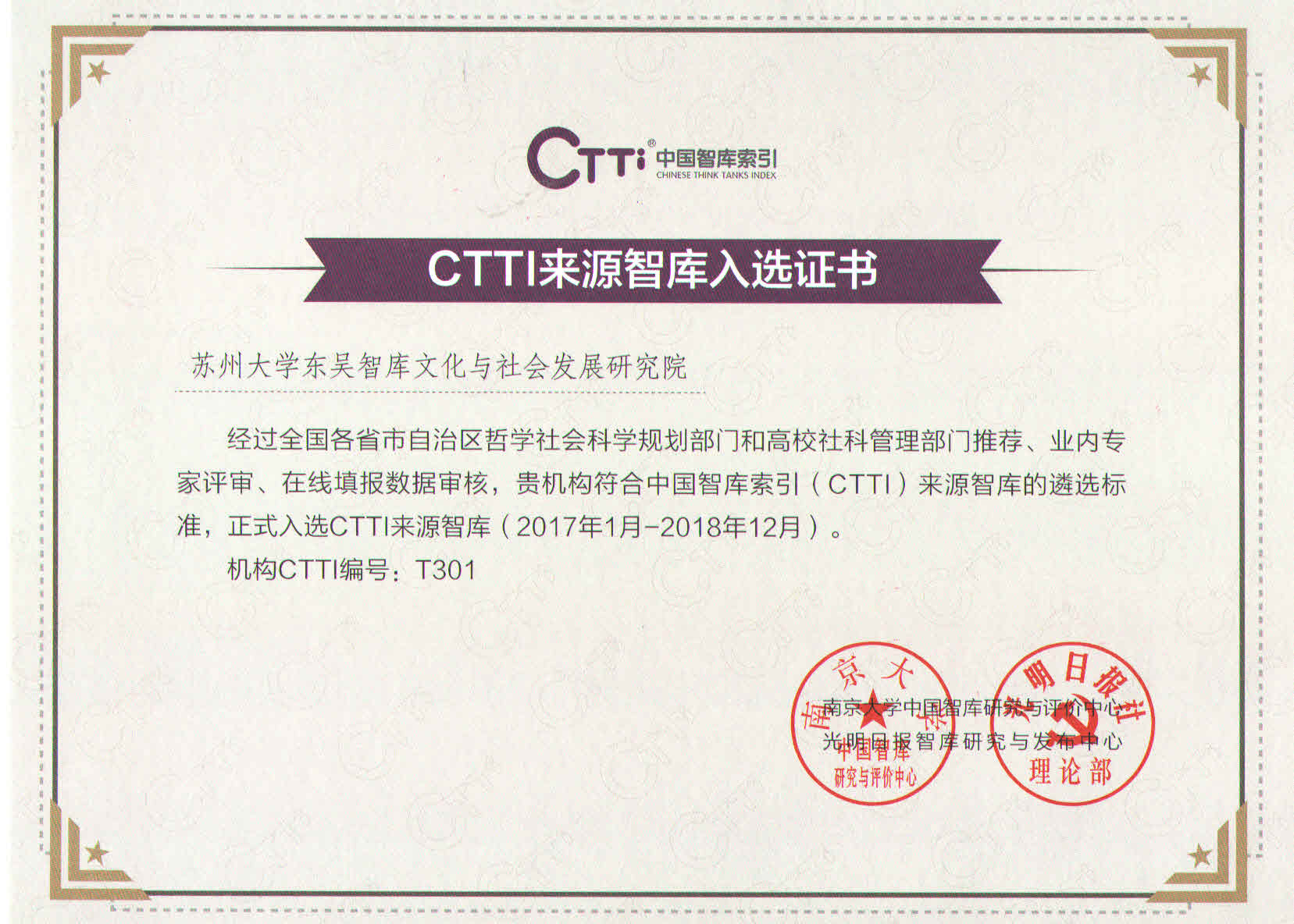 东吴智库入选中国智库索引(CTTI)首批来源智库