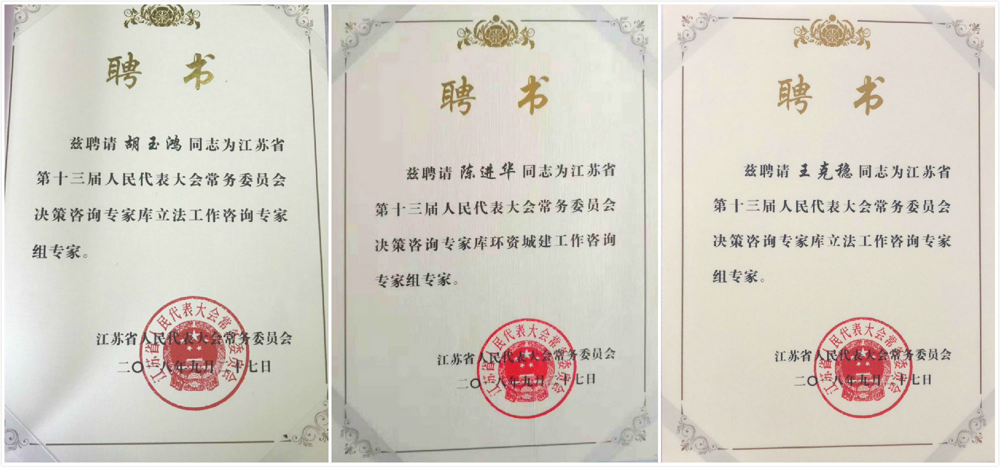 胡玉鸿、陈进华、王克稳教授受聘江苏省人大常委会决策咨询专家