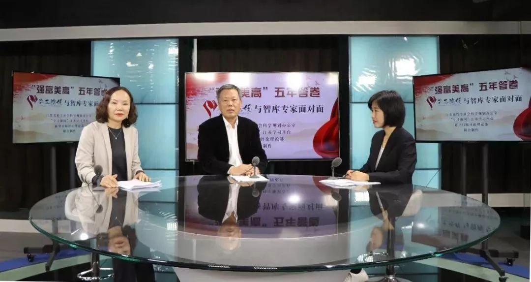 2014年12月,习近平总书记在江苏视察期间,全面系统地指示要求紧紧围绕“两个率先”光荣使命,努力建设经济强、百姓富、环境美、社会文明程度高的新江苏。2019年11月,江苏省哲学社会科学规划办公室、“学习强国”江苏学习平台、新华日报社全媒体评论理论部共同主办“强富美高”五年答卷——与智库专家面对面系列访谈,分别围绕“经济强”“百姓富”“环境美”“社会文明程度高”主题约请专家,总结江苏五年来发展成绩,补短板强弱项,为江苏高质量发展建言献策奋力。