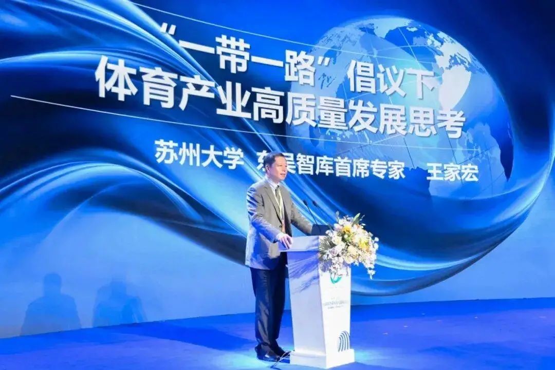 东吴智库首席专家、苏州大学特聘教授、江苏体育健康产业研究院执行院长王家宏教授应邀出席会议,并围绕《“一带一路”倡议下体育产业高质量发展思考》作主旨演讲。