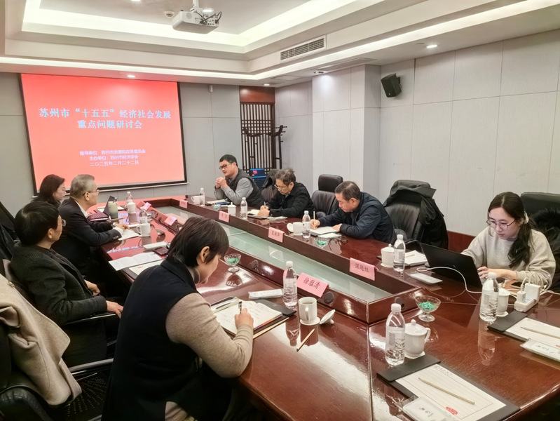 2月22日,由市发改委指导、市经济学会主办的苏州市“十五五”经济社会发展重点问题研讨会成功举办。苏州大学东吴智库执行院长段进军、苏州大学中国特色城镇化研究中心主任钱振明、苏州科技大学教授范凌云、西交利物浦大学城市与环境研究中心主任徐蕴清应邀参与研讨。研讨会由市经济学会秘书长夏成华主持,市发改委规划处与中国国际经济咨询有限公司就《苏州市“十五五”发展规划基本思路》的初步考虑作介绍,市发改委副主任李湛作总结。