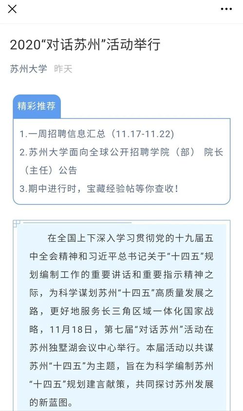 苏州大学官方微信平台:《2020“对话苏州”活动举行》