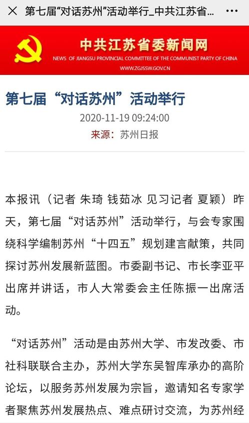 中共江苏省委新闻网:《第七届“对话苏州”活动举行》