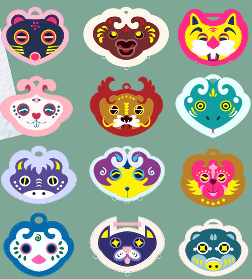 十二生肖系列手绣香囊:将金锁与十二生肖形象结合,传达出双倍的祝福。