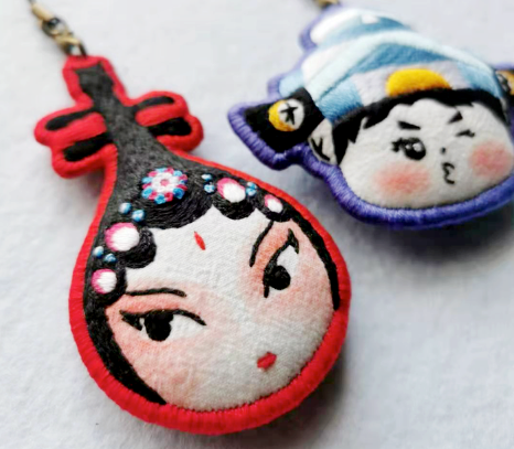 才子佳人系列香囊:才子形象以吴门四家之唐寅结合苏州博物馆造型的官帽,暗含博学多才之意;佳人形象以昆曲琵琶结合,一曲一琴,传达苏州文化美好的特征。