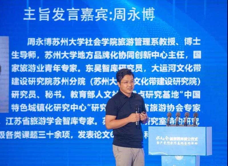 仪式上,周永博以“大运河国家文化公园场景、舒适物与文旅融合”为主题发表演讲,他从大运河国家文化公园和当代城河关系之变迁谈起,提出太仓一方面应积极响应城河关系变化,重视城市空间文化与价值观表达,以消费活力吸引人才;另一方面太仓应发展文旅融合,建立并完善符合当地文化、体现未来趋势、面向全球公众的舒适物体系,推动城市更新与发展。